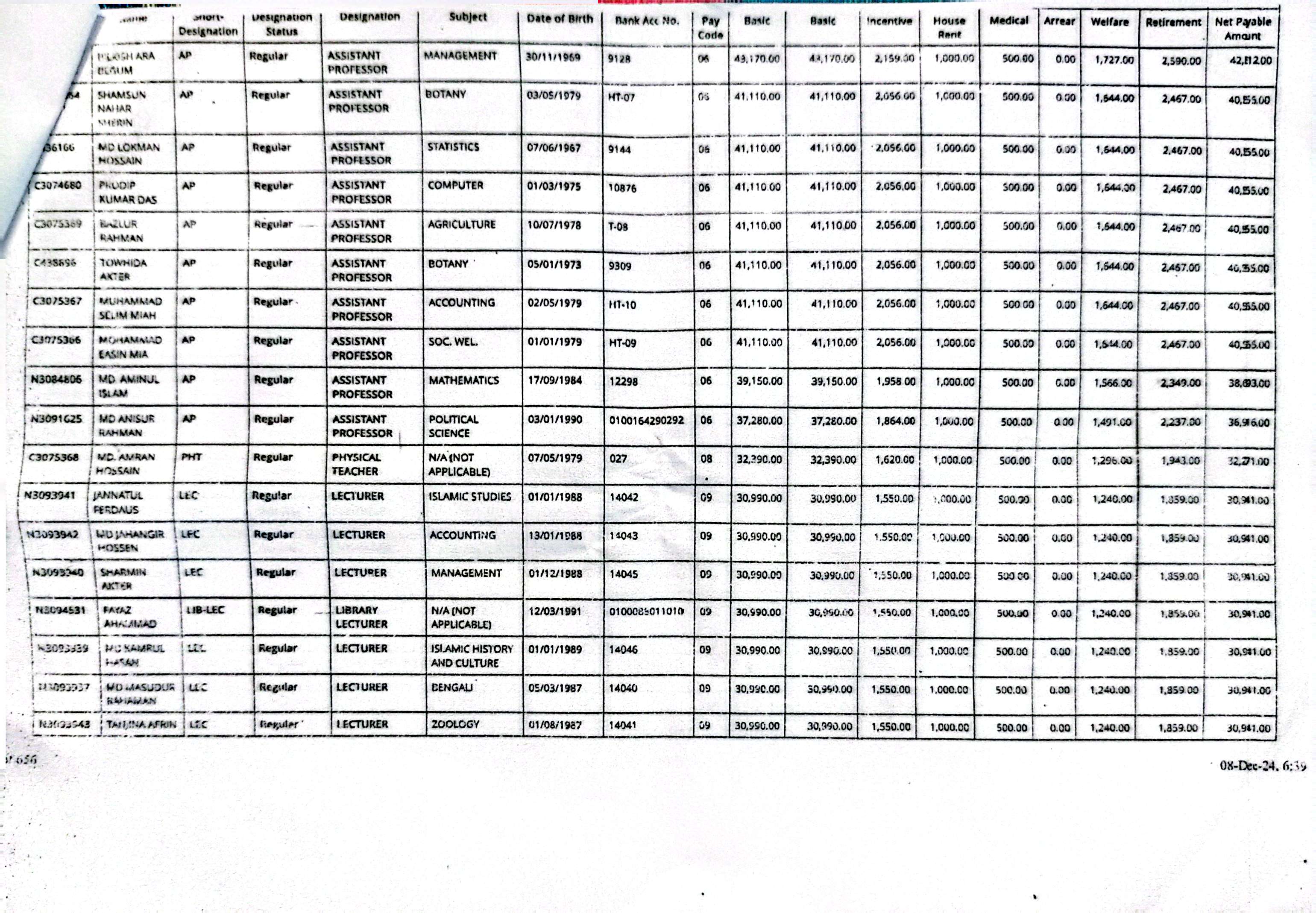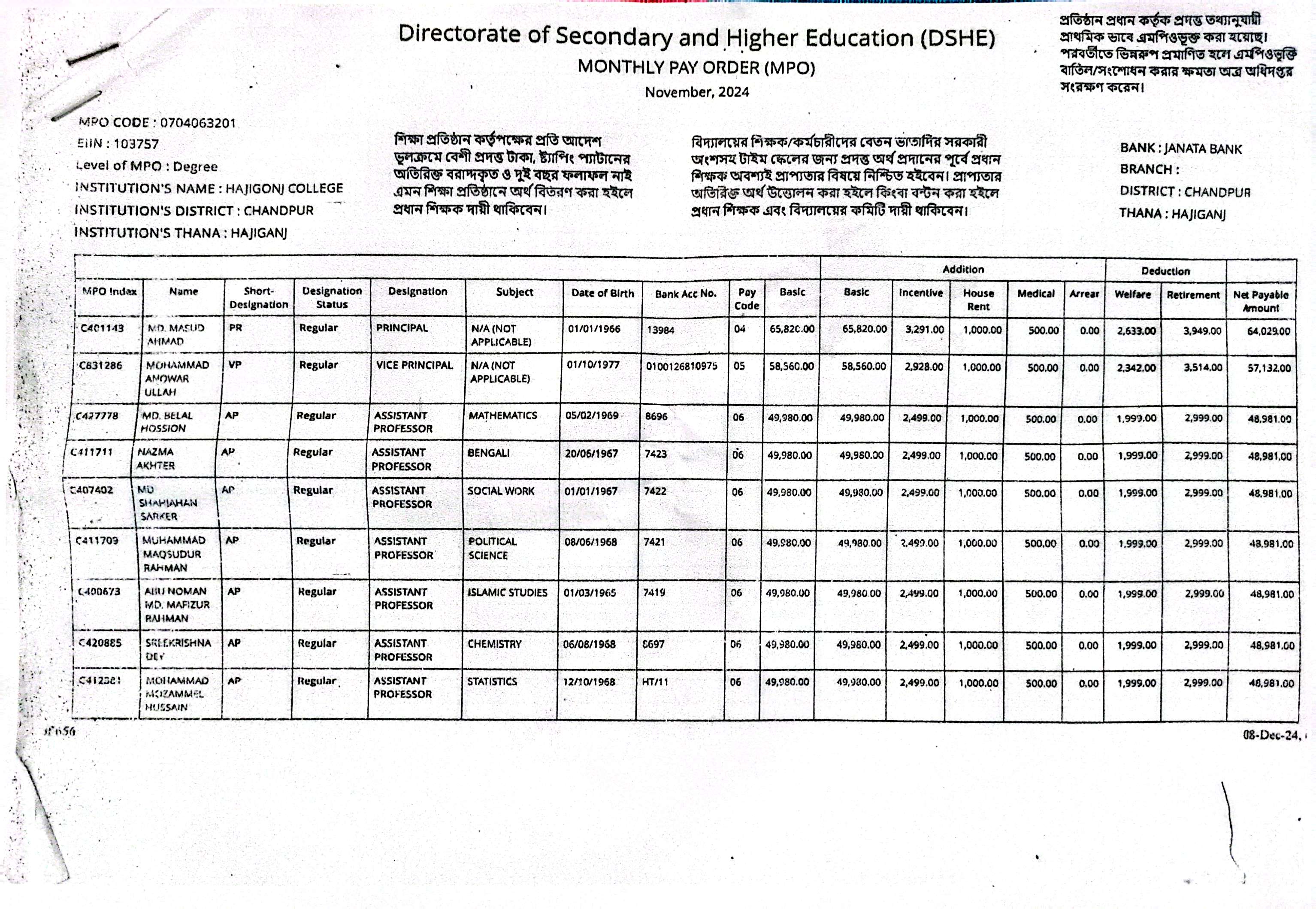 হাজিগঞ্জ ডিগ্রী কলেজের এমপিও কপি